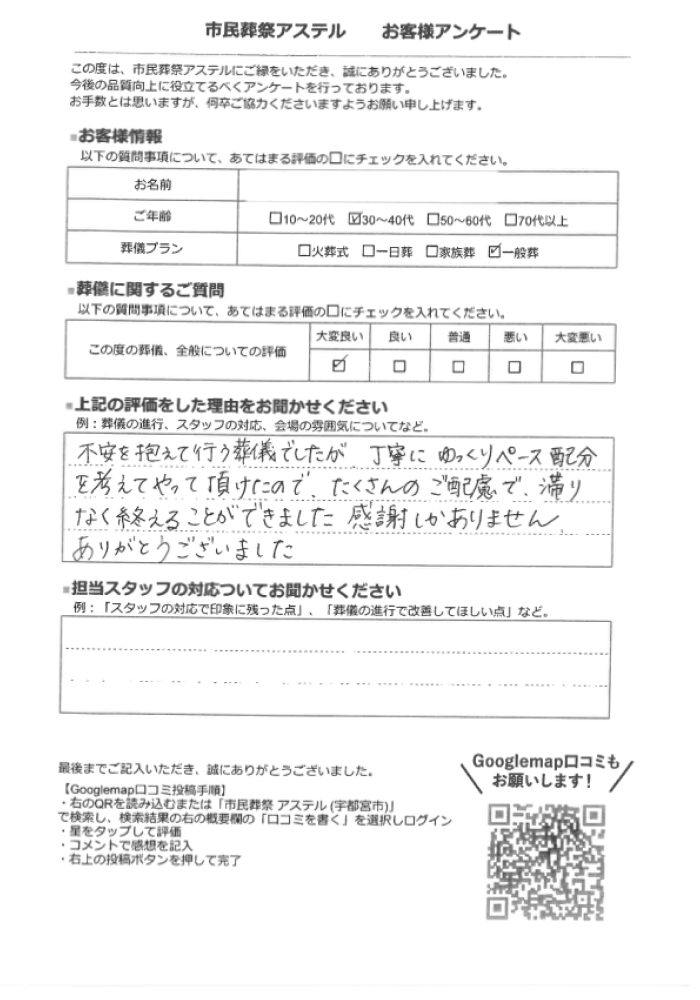 一般葬プランを利用されたお客様の声です。
