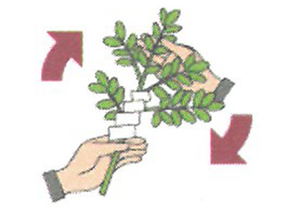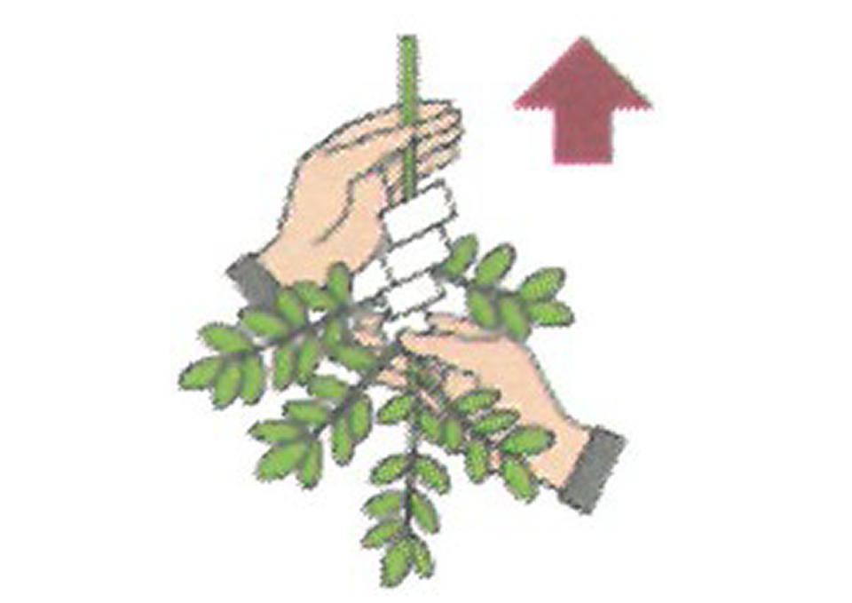 - 左手で葉の部分を支えながら、右の手のひらを返し、