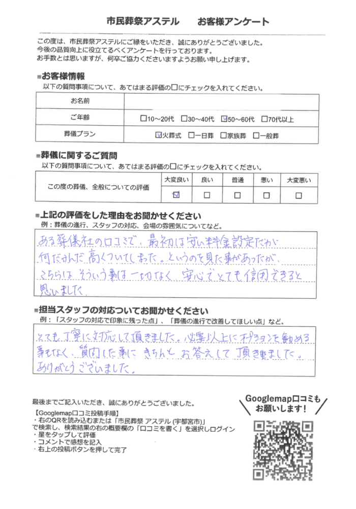 施行させていただいた葬儀事例 項目詳細葬儀プラン直葬プラン葬儀総額費用186,700円円参列人数約10人斎場名悠久の丘斎場の地域宇都宮市安置場所モーチュアリー美念堂安置場所の地域宇都宮市 同じエリアの葬儀事例 直葬 悠久の丘|宇都宮市 5名の直葬|【市民葬祭アステル】宇都宮市の葬儀・家族葬・直葬 施行させていただいた葬儀事例 項目詳細葬儀プラン直葬プラン葬儀総額費用172,700... 2025年12月6日 直葬 悠久の丘|宇都宮市 直葬|【市民葬祭アステル】宇都宮市の葬儀・家族葬・直葬 施行させていただいた葬儀事例 項目詳細葬儀プラン火葬式プラン葬儀プラン費用96,8... 2025年10月20日 直葬 悠久の丘|宇都宮市 10名の直葬|【市民葬祭アステル】宇都宮市の葬儀・家族葬・直葬 施行させていただいた葬儀事例 項目詳細葬儀プラン直葬プラン葬儀総額費用186,700... 2025年12月21日 直葬