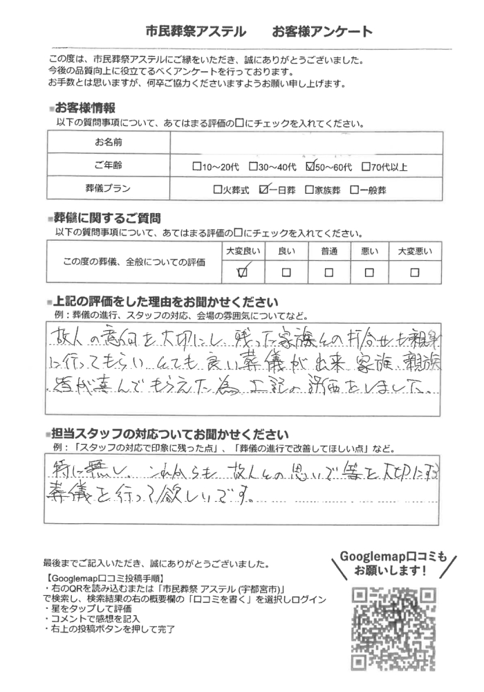 施行させていただいた葬儀事例 項目詳細葬儀プラン家族葬プラン葬儀総額費用960,000円参列人数20人火葬場宇都宮市悠久の丘火葬場の地域宇都宮市安置場所モーチュアリー美念堂安置場所の地域宇都宮市 同じエリアの葬儀事例 家族葬 悠久の丘|宇都宮市 40名の家族葬|【市民葬祭アステル】宇都宮市の葬儀・家族葬・直葬 施行させていただいた葬儀事例 項目詳細葬儀プラン家族葬プラン葬儀総額費用613,00... 2025年12月20日 家族葬 宇都宮市悠久の丘|宇都宮市 130名の家族葬|【市民葬祭アステル】宇都宮市の葬儀・家族葬・直葬 施行させていただいた葬儀事例 項目詳細葬儀プラン家族葬プラン葬儀総額費用646,00... 2026年1月2日 家族葬 悠久の丘|宇都宮市 40名の家族葬|【市民葬祭アステル】宇都宮市の葬儀・家族葬・直葬 施行させていただいた葬儀事例 項目詳細葬儀プラン家族葬プラン葬儀プラン費用550,... 2025年12月4日 家族葬